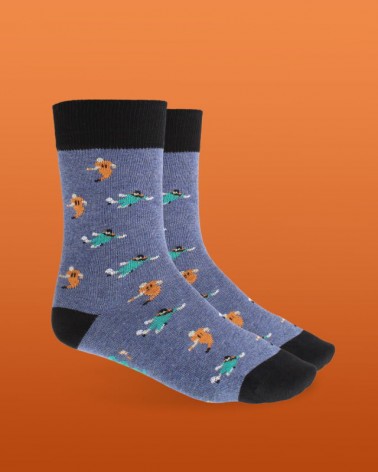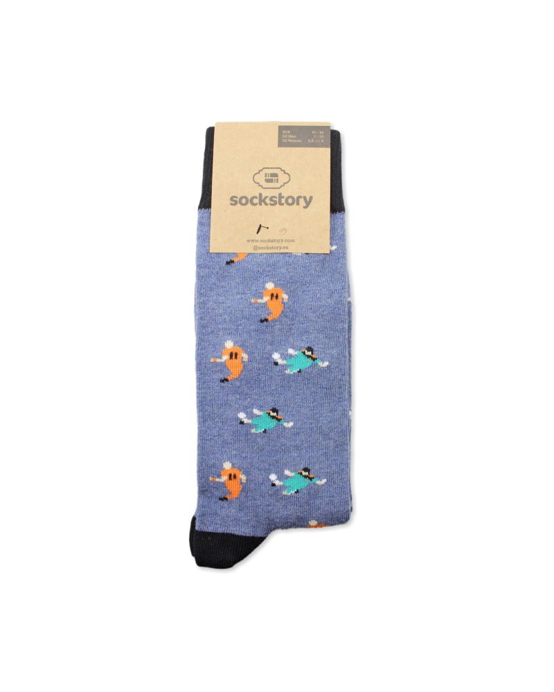 Mid calf socks in blue Jasper color with the stop of Iker Casillas to Arjen Robben in the final of the World Cup of South Africa, commemorating the 10 years of the victory of the Spanish National Team in 2010. Elastic details, heel and toe in black.