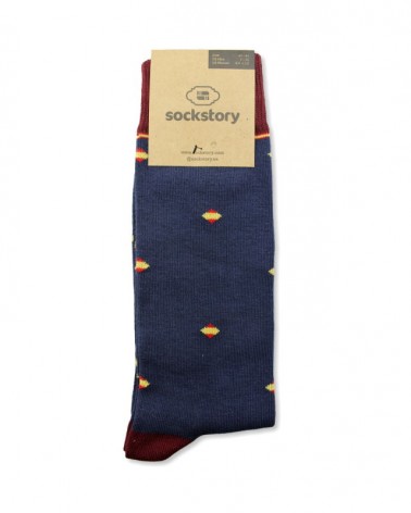 Mid calf socks in navy blue color with the Spanish flag in rhombus. Elastic details, heel and toe in burgundy.