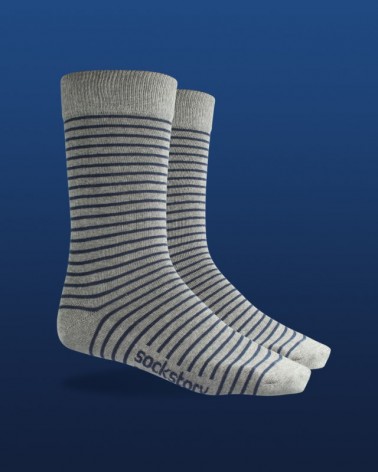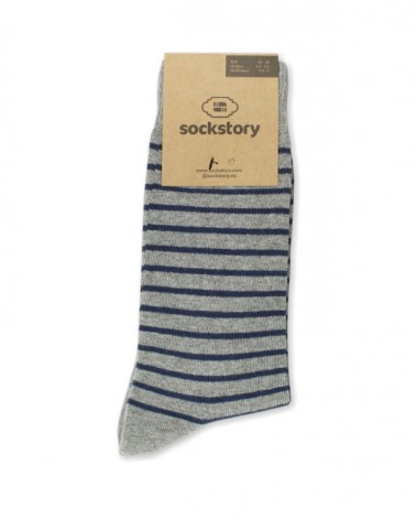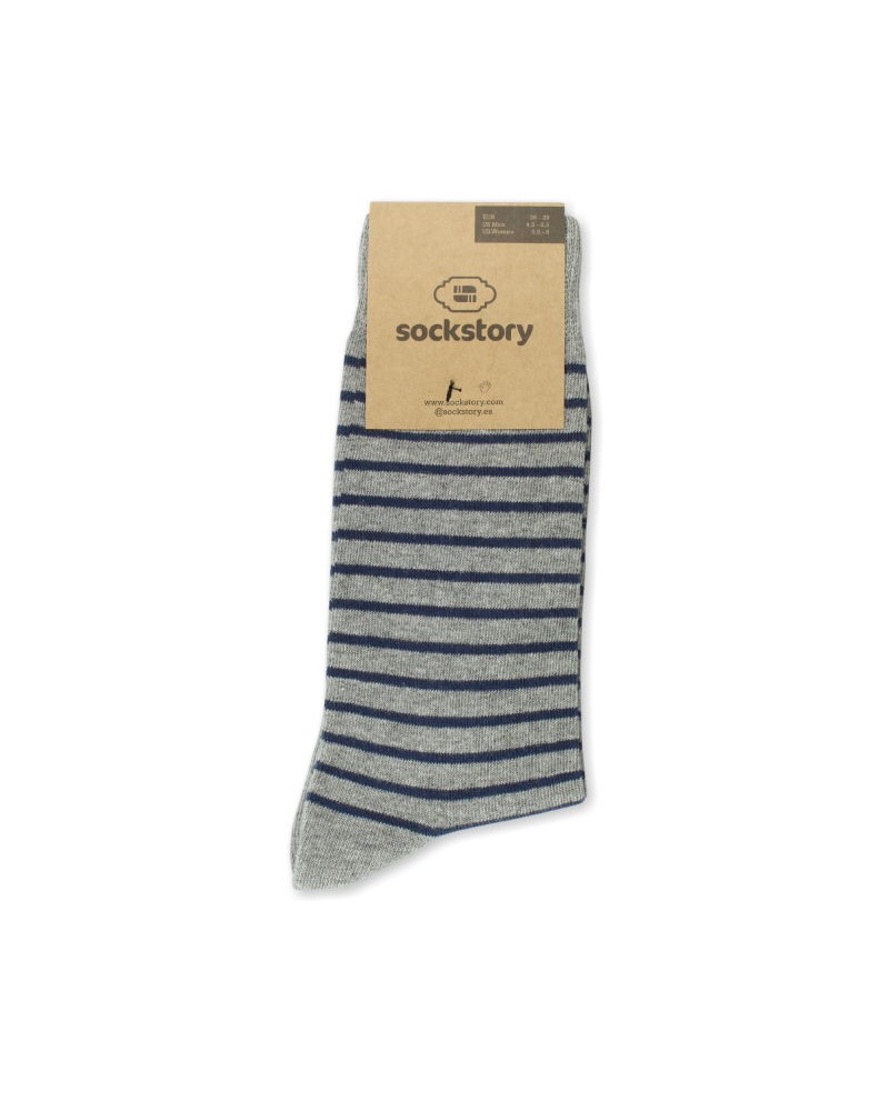 Calcetín Media Caña en color gris jaspeado con rayas marineras