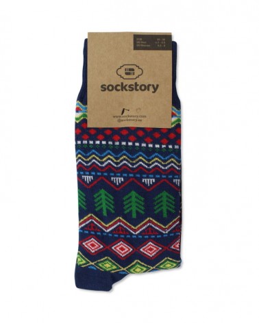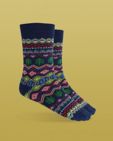 Calcetines de media caña en color azul marino con un patrón étnico con distintos colores.